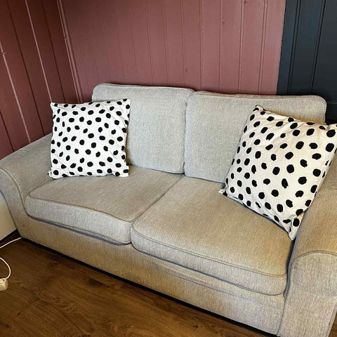 Den er veldig behagelig å både sitte og ligge i. Ryggputene er faste og gode, uten å være harde.