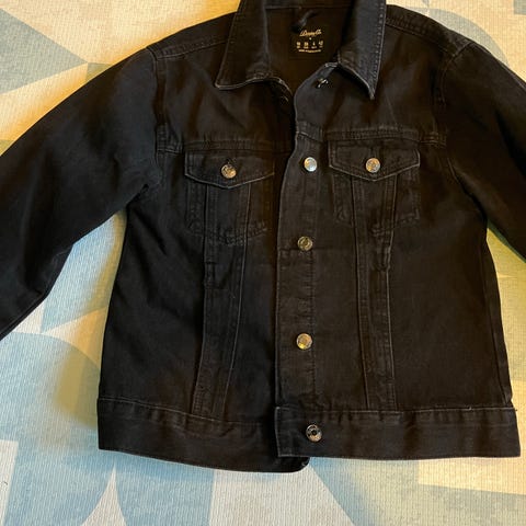 Bik Bok Andre jakker i denimmateriale, størrelse M, farge svart. Jakken er designet for kvinner og har knappelukking foran samt lommer på brystet. Egnet som ytterplagg i ulike sammenhenger.