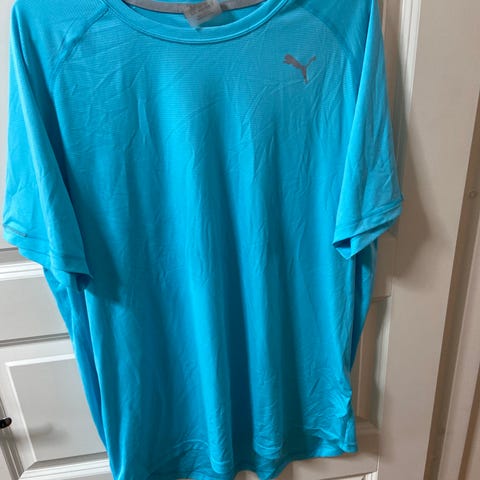 Puma trenings T-skjorte i blå farge, størrelse XL for herre. Laget i pustende materiale som egner seg for trening og fysisk aktivitet.