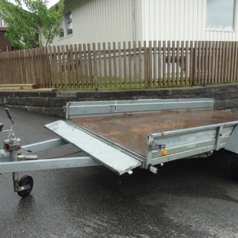 Kraftig nasehjul og rigget for å montere diverse hyller og reoler inni , solide løsninger med bakluke og sidedør , lås osv. støttebein på siden bak får og holde vekt. Kun kjørt fra fabrikk og hjem til meg , kjøpt igjennom ett firma men fant ut att vi ikke hadde bruk for den.