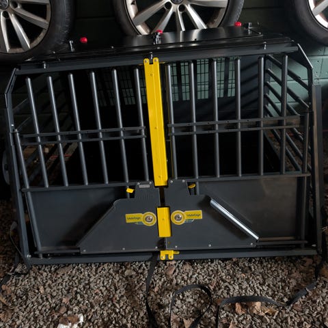 Kollisjonssikret splintrefritt hundebur med deformasjonssone.