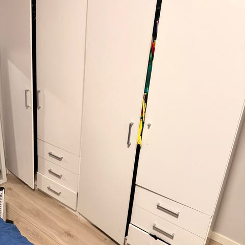 Et heltre skap som har mange bruksområder. Er tidligere blitt brukt til oppbevaring på kontor, og de siste årene som garderobeskap for barn. Består av fem moduler som enkelt festes til hverandre. Hvitmalt utvendig.