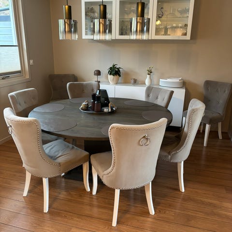 Selger 4 stk spisestoler fra Buhus. «Lamar spisestol med armlene».