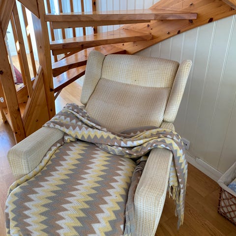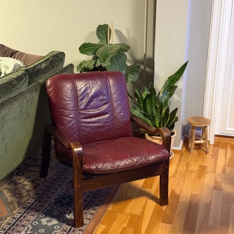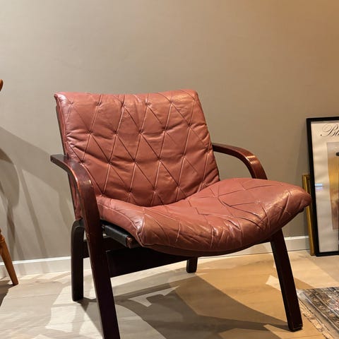Stolen er pent brukt og i god stand. Tre av plastføttene under beina mangler, men dette har ikke hatt betydning for bruken.