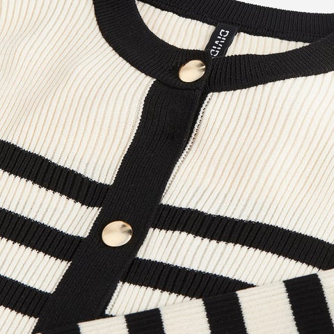 Svart ribbestrikket bomullscardigan, lukkes med 3 knapper i front.