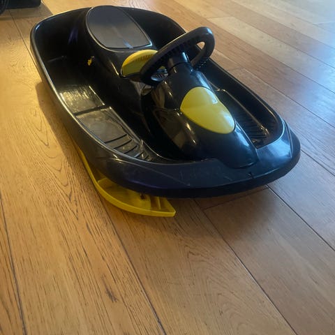 Styrbord akebrett med ratt. Solid håndbrems med stålbrodder.