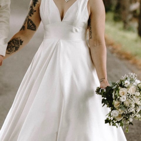 Denne kjolen brukte jeg når jeg giftet meg i 2024. Den er brukt en gang.