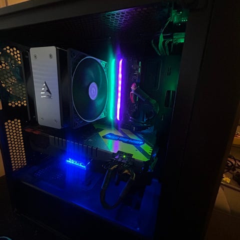 MSI gaming desktop med RGB-belysning og NVIDIA GeForce RTX 2080ti MSI x trio. Inkluderer alt av tilkoblingsmuligheter du kan tenke deg. Wifi og Bluetooth. Kabinett med glasspanel fra NZXT. God plass til mer lagring i både HDD og SSD. Brukt til gaming i 1440p.