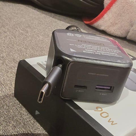 Jeg har en bærbar billader av et utmerket merke – ANKER, med 75 watt. Dette er en svært rask lader med 2 uttak.