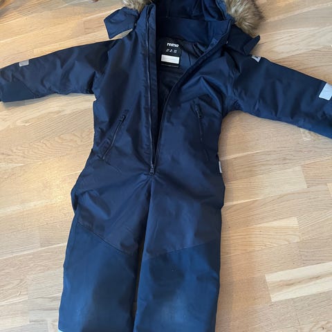 Reimatec Stavanger vinterdress str 122. Den er godt brukt av et barn en vintersesong. Dressen holder barnet tørt og varmt. Selges uten hette. Ingen hull i dressen, den er nyvasket og trenger impregnering.