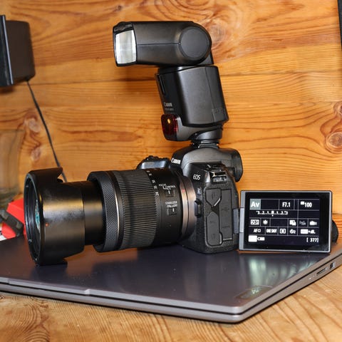 Et solid bygd kamera på 30 MP ideelt for alle typer vanlig fotografering. Samme bildesensor som i Canon EOS 5D Mark IV. En eier, kjøpt august 2022, kvittering foreligger. Svært lav lukkerbruk, filnummereringen viser nå 8650 som er reell bruk fordi telleverket aldri er blitt nullstilt. Kosmetisk omtrent som nytt, eneste bruksmerker er et par små flekker med lakkslitasje på to hjørner av bunnplaten (foto 6). Det har fungert som b-kamera og knapt vært utendørs. Kommer i original eske med alt tilbehør: lader, 2 brukte batterier (LP-E6NH), kamerareim, kabler. Batterigrepet er som nytt. Utstyret kan etter avtale vurderes/prøves i Kristiansundsområdet. Kan selges med et omtrent ubrukt Canon RF 50mm 1.8 for et tillegg på kr. 1000. Eventuell frakt betales av kjøper.