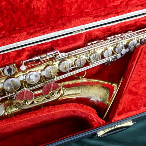 Nesten ny altsaksofon i "Rosegull ". 2 måneder har blitt godt oppblåst av en profesjonell musiker. Intonasjonen er Ok og instrumentet har behagelig varm lyd , lett å blåse inn i. Den er veldig bra for nybegynnere og studenter . Jeg justerte paddene for å sikre god dekning på alle toner .