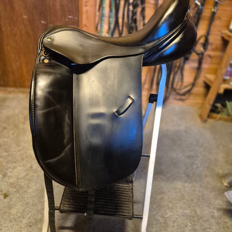 Selger en eldre Kentaur Medea 1, da den ikke passer hesten min. Salen er hel og i grei stand, noe slitasje på gjordstropper men det har ingen betydning for bruk. 17,5 sete. Brukt på varmblods. Stoppen i salen må sannsynligvis byttes snart.