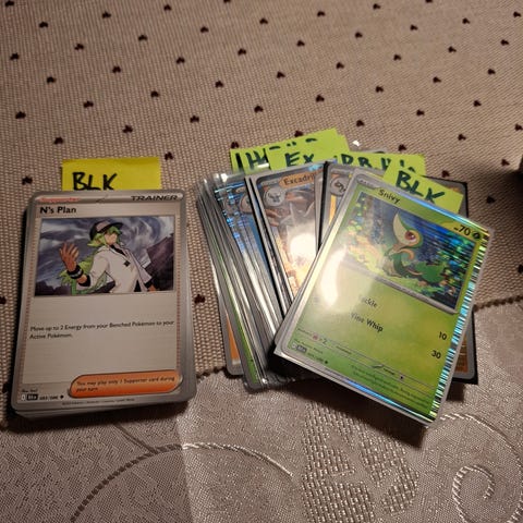 Pokemon Black Bolt Binder Collection, Inkluderer thematic 9-pocket binder featuring Zekrom, five booster packs from the special Scarlet & Violet—Black Bolt expansion. Kortene har vært i perm hele tiden, ingen skader. Hvis ønskelig, kan jeg ta flere bilder av kortene. Kun vipps.
