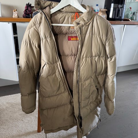 Parajumpers Masterpiece Series vinterjakke i størrelse S for kvinner. Jakken har beige farge og er laget av dunmateriale. Designet for å gi varme og komfort i kalde værforhold. Ekte pels og kostet 7000 ny