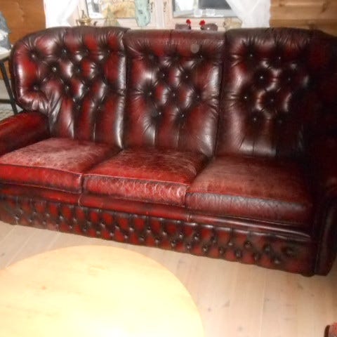 Ekte Chesterfield i skin 3+1(muligens et bord sammen)