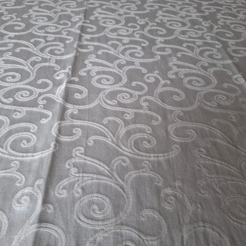 Stor lys gul duk med fint mønster. Jeg vil kalle den kremgul, 100 % polyester,