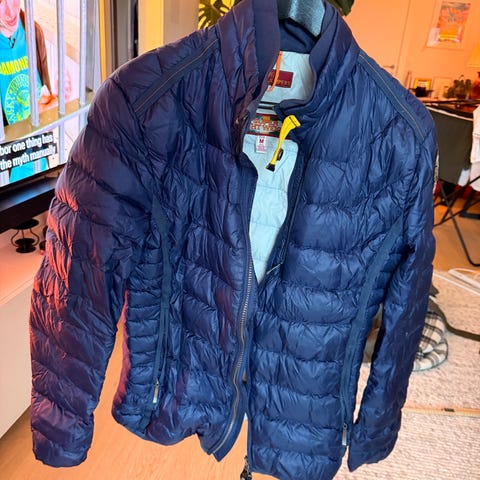 Parajumpers Light Weight dunjakke i størrelse S for menn. Jakken er svart og laget av dun, designet for å gi lett varme og komfort ved utendørs bruk.