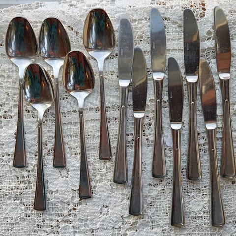 Supplering utgått bestikk skje kniv gaffel skjeer kniver gafler hardangerbestikk