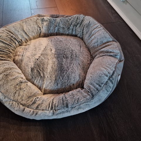 Rund katteseng i oransje farge med veldig mykt materiale. Egnet for katter som et komfortabelt hvilested.