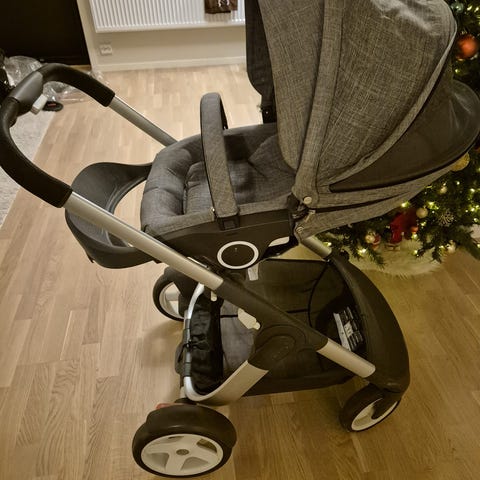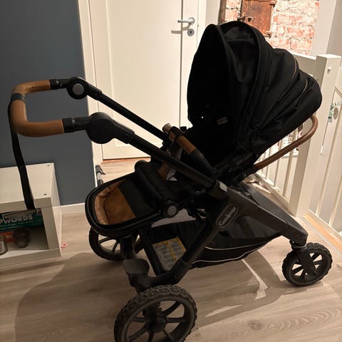 Emmaljunga barnevogn med sportsvogn og liggedel i brun farge. Sportsvognen har justerbar ryggstøtte, beskyttende bøyler og hjul med god demping. Liggedelen gir et komfortabelt og trygt sovemiljø for barnet. Passer for barn i småbarnsalder og gir mulighet for enkel overgang mellom liggedel og sportsvogn.
