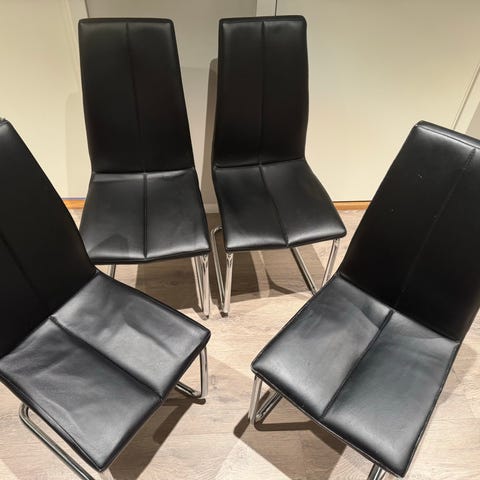 Fire stoler, av typen vist på bilde, kan og følge med, "hører ikke til" bordet, men kan brukes til bordet.