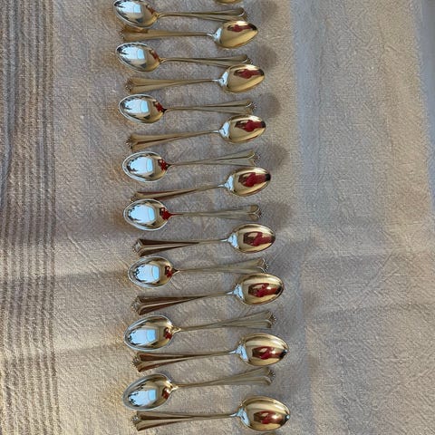 Grøtskje med fint mønster. Fra Aksdal tinn. Som ny, ikke brukt.