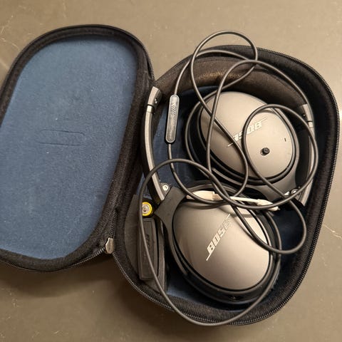 Bose QuietComfort hodetelefoner selges da de ikke brukes lenger. Ledning og adapter følger med. Normale bruksmerker.