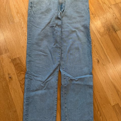 Selger disse mørkeblå jeansa fra dressmann i størrelse 32/34. De er regular fit som betyr at de ikke er tight. Ta kontakt om du trenger no annen info.