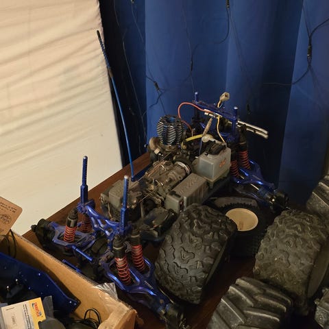 Rc bil selges. Denne har blitt kjørt 3 ganger siden den var ny. Den har stått i kjelleren siden 2008. Denne går på nitro bensin. Kontroll og bensin flaske følger med. Har også esken til bilen.bilen har ingen skader. Men mangler gløder