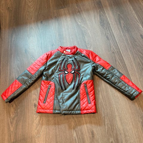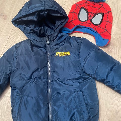 Tøff Spiderman regnjakke med innfor av fleece. Fast hette og to lommer med trykknapper.