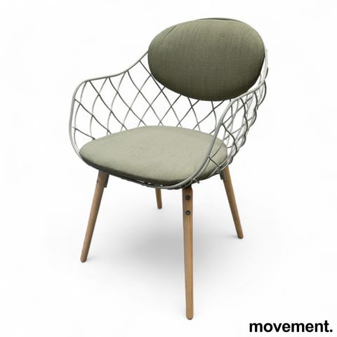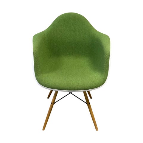 4 stk Vitra Eames Plastic Armchair DAR med setepute Hvitt skall grønt stoff krom