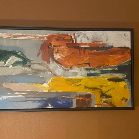 Maleri Landskap med Hus og Fjell