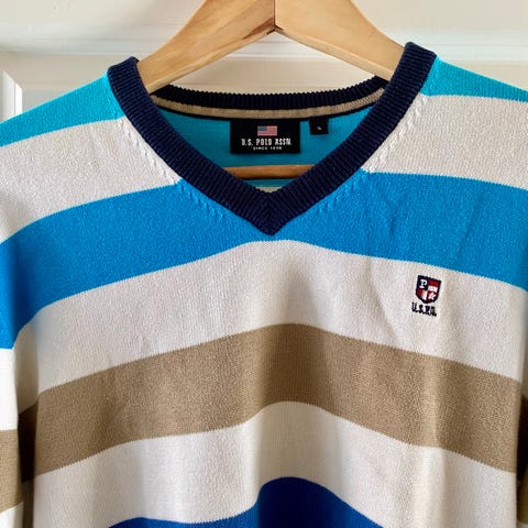 Størrelse L/G (14–16), men passer fint til både ungdom og voksne som bruker Small. Kvaliteten er som forventet fra Ralph Lauren – solid stoff, god passform og gjennomførte detaljer.