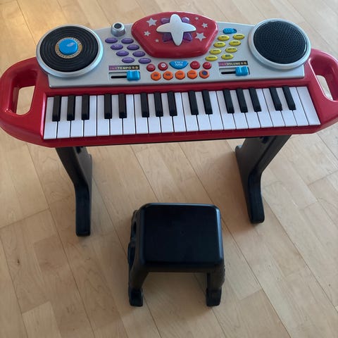 Pent brukt keyboard til barn. Festet på stativ men kan og tas av stativet. Har en krakk som følger med. Fungerer utmerket