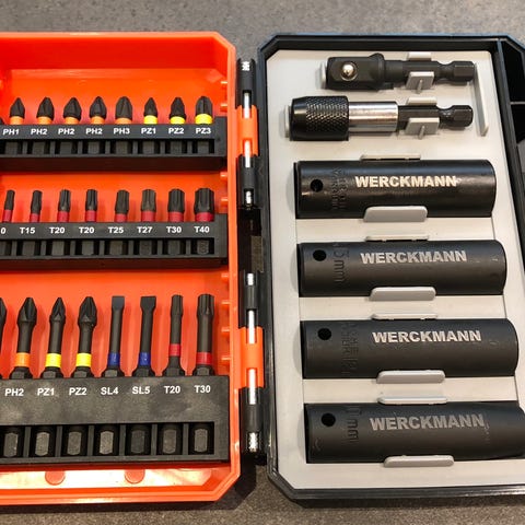 Innhold: 1 stk Skrallehandtak 10 stk Piper (5.5, 6, 7, 8, 9, 10, 11, 12, 13 og 14 mm) 2 stk Forlengere (50 og 100 mm) 1 stk Univerversalhảndtak 1 stk Universalledd 1 stk Bitsadapter 14"x 14" 22 stk Bits (PH 1-2x2-3, PZ 1-2-3, TXT 10-15-20-25-27-30-40, Innvendig sekskant; 3-4-5-6, Spor 3-4-5-6)