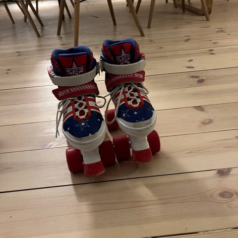 SFR rulleskøyter for barn i størrelse 29. Skøytene har rosa og turkis farger. De har snøring og borrelås for justerbar passform fra 29-33.