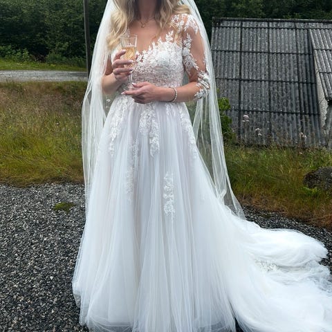 Nydelig og elegant brudekjole – brukt én gang størrelse S/M