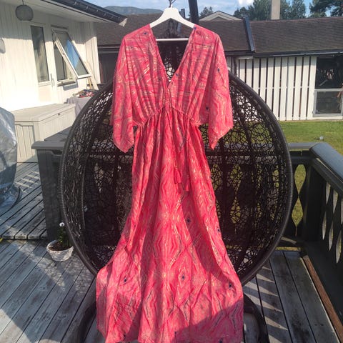 Kun vasket, ikke brukt. Nydelig kjole, men ble for stor utringning til meg. Husker ikke merket, men kjøpt på butikk der de har litt dyrere merker