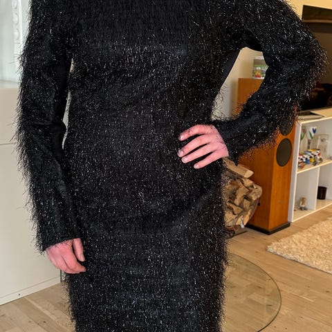 Tiger of Sweden festkjole i størrelse M, farge svart. Laget av polyester. Kjolen har et enkelt og elegant design med plisserte detaljer på siden. Ny pris kr 2.000,-.