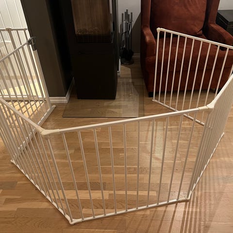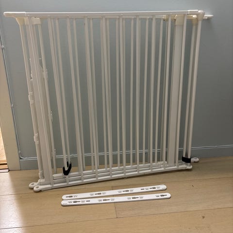 BabyDan Flex XL barnegrind i hvit farge. Grindens design inkluderer en dør med stoppsystem for sikker lukking. Passer for å sikre områder i hjemmet for barn. Inkluderer justerbare deler for tilpasning av bredde.