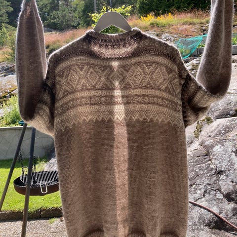Nystrikket kofte som heter kirsebærblomstring. Strikket I Finull fra Rauma