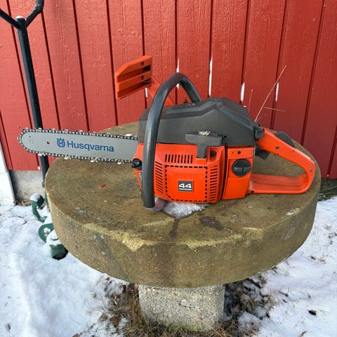 Husqvarna 435 motorsag med oransje farge. Sagkjede og sverd er inkludert. Egnet for generell trefelling og beskjæring.Meget fin sag.