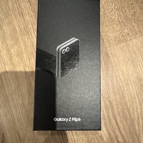 Samsung Galaxy Z-series flip 6 mobiltelefon med 256 GB lagringskapasitet. Kun telefon. Fått ny fra forsikring, ikke åpnet. 47623535