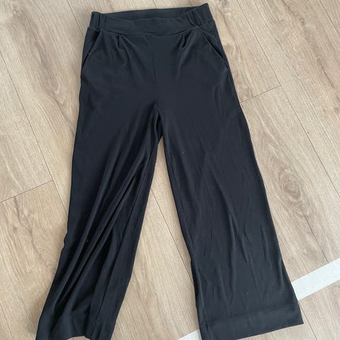 Pene bukser med litt vidde i bena. God kvalitet fra Kello. Fin kant nederst på bena gir en kul effekt. Glidelås i siden. Str 36. Sort. Se mine andre annonser.
