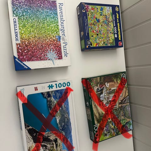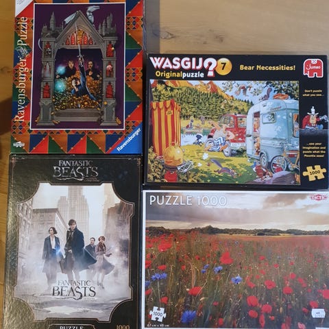 Mange flotte puslespill, alle brikker intakt. Kr 80 pr 1000 brikker eller 300 for alle 4. Hentes i Hvitsten, Vestby, eller i Fredrikstad. Kan sendes hvis kjøper betaler porto.