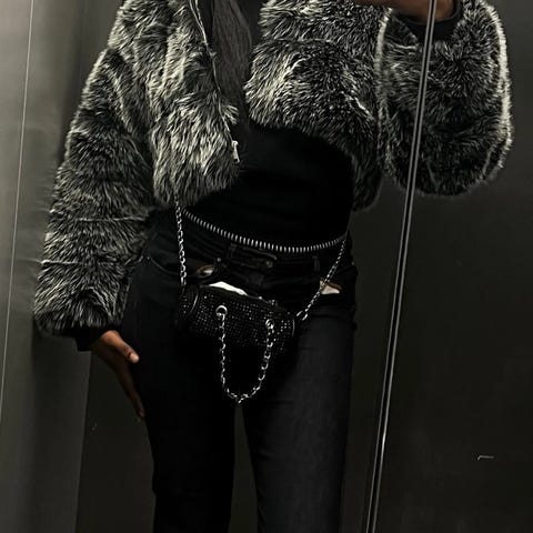 Super stilig svart cropped pelsjakke med hette perfekt for deg som vil ha en moderne og luksuriøs look 🤍Perfekt til høst og vinter. Et must-have i garderoben