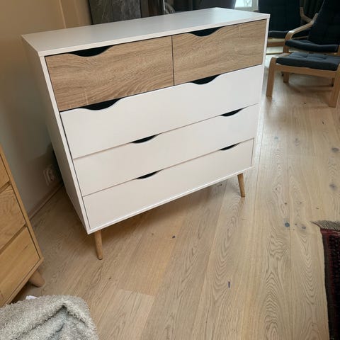 Kommode 4 skuffer, egetræsfiner med hvid bejdse, 80x100 cm
