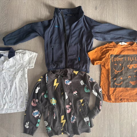 Allerguveennlig i størrelse 104, flerfarget og designet for unisex bruk. Plaggene består av ulike typer klær egnet for barn, med varierende farger og mønstre. Kom gjerne med bud