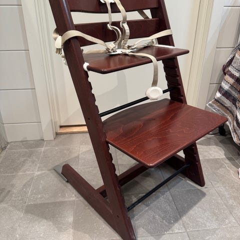 Gammel tripp trapp stol fra Stokke. Sender ikke. Må hentes.